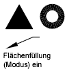 Aktiviert den Füllmodus. Die Hochzugsrichtung eines 3D-Objekts muss parallel zur aktuellen Blickrichtung sein, und verdeckte Linien dürfen nicht unterdrückt werden, damit die Füllung des Objekts sichtbar ist.