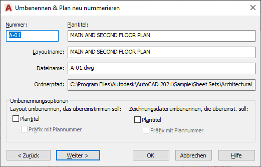 Plansatz (Befehl), Finden: Umbenennen & Plan neu nummerieren