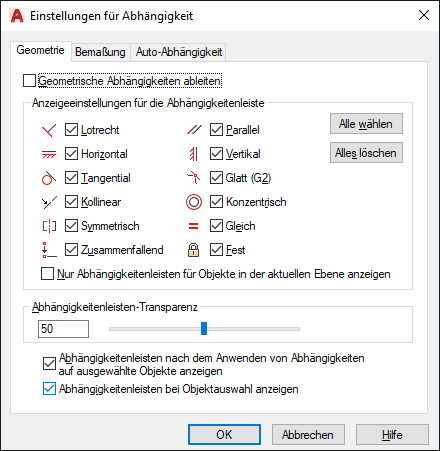 Steuert die Anzeige von geometrischen Abhängigkeiten in Abhängigkeitenleisten