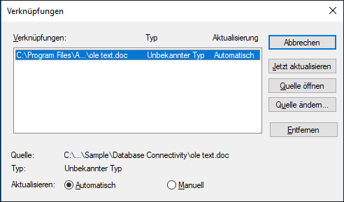 Fragt beim Öffnen eines Dokuments, ob die Verknüpfung aktualisiert werden soll.