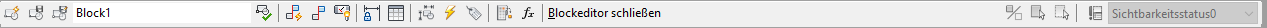 Der Werkzeugkasten des Blockeditors wird angezeigt, wenn die Multifunktionsleiste nicht aktiv ist. Er wird ebenfalls angezeigt, wenn Sie den Blockeditor aufrufen, während die Multifunktionsleiste geschlossen ist.
