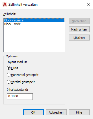 Die Zellendaten in einer Tabelle können Text und mehrere Blöcke enthalten.