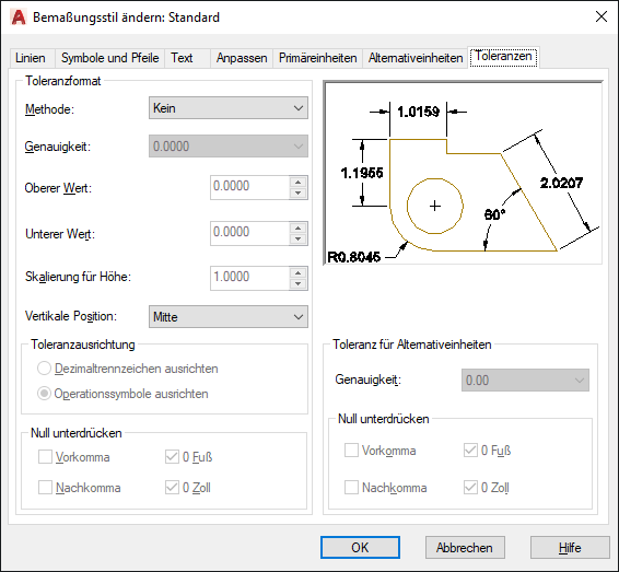 Bestimmt die Anzeige und das Format von Maßtexttoleranzen.