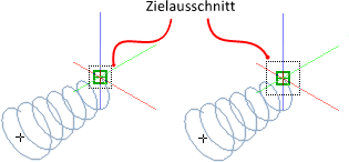Objektfänge werden aktiv, sobald Sie das Objektfang-Zielfenster über ein Objekt bewegen, z. B. einen Schnittpunkt oder Endpunkt. Je nach Komplexität der Zeichnung können Sie die Fläche, auf die sich der Objektfang auswirkt, vergrößern oder verkleinern.