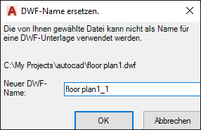 Ermöglicht das Umbenennen einer DWF-Unterlage, wenn der Name nicht eindeutig ist.