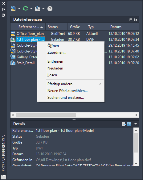 Wenn die betreffende Referenz zugeordnete XRefs oder Blockdefinitionen aufweist, werden die Referenz und die verschachtelten Referenzen im Dialogfeld Referenz bearbeiten angezeigt und können ausgewählt werden. Die verschachtelten Referenzen werden nur dann angezeigt, wenn das ausgewählte Objekt zu einer verschachtelten Referenz gehört. Es ist nicht möglich, mehrere Objekte gleichzeitig zum Bearbeiten auszuwählen. Wenn Sie eine Referenz bearbeiten, die OLE-Objekte enthält, werden die OLE-Objekte zwar angezeigt, können jedoch nicht zur Bearbeitung ausgewählt werden.
