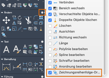 Sie können über die Gruppe Ändern der Werkzeugleiste auf mehrere Optionen für die Zeichnungsreihenfolge zugreifen. Klicken Sie in der Gruppe Ändern auf