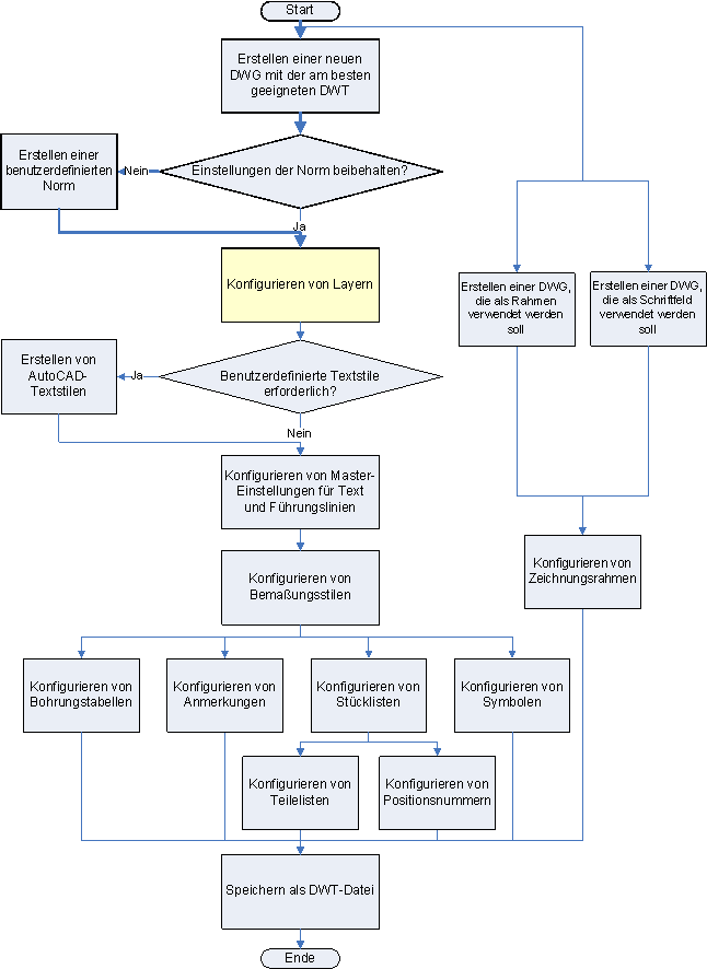Unternehmen XYZ verwendet AutoCAD bereits seit mehreren Jahren und hat Richtlinien für die Verwendung von Layern definiert. Die Layer in AutoCAD Mechanical-Toolset müssen ebenfalls diese Richtlinien einhalten.