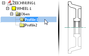In diesem Beispiel enthält der Ordner Profile:1 das Profil der oberen Scheibe. Profile:2 ist eine weitere Zuordnung dieses Ordners, die durch Spiegeln von Profile:1 erstellt wurde. Wenn Sie ein Profil ändern, wird das andere automatisch aktualisiert.