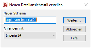 Zeigt das Dialogfeld Neuer Detailansichtsstil an, in dem Sie die Eigenschaften des neuen Detailansichtsstils definieren können.