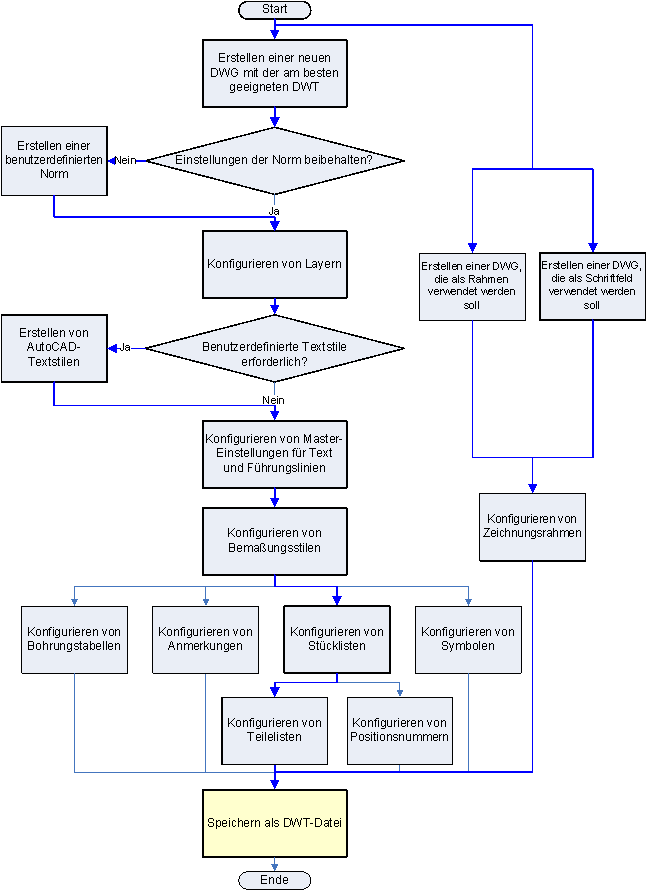 Die Vorlagendatei Firma XYZ.dwt mit allen Normänderungen und Einstellungen befindet sich im vorgabemäßigen Vorlagenordner von AutoCAD Mechanical-Toolset. Alle neu erstellten Zeichnungen müssen auf dieser Vorlage basieren, um die Zeichnungsnormen des Unternehmens einzuhalten und zu verwalten.