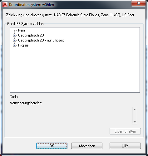 Gibt den GeoTIFF-Code für das ausgewählte Koordinatensystem an.