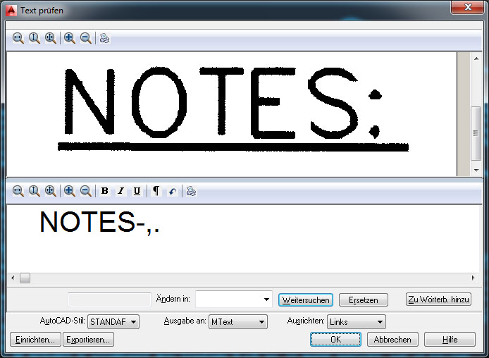 Gibt die Konvertierung des Rastertexts in AutoCAD-Text bzw. AutoCAD-MText an.
