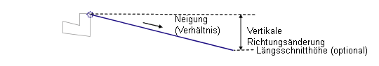 Es wird eine Verknüpfung vom Zuordnungspunkt in Richtung der Einfügung für die angegebene Neigung eingefügt, bis diese die angegebene Höhe erreicht hat. Wird zur Laufzeit ein Längsschnittname angegeben, wird die vertikale Abschrägung so angepasst, dass sie der Längsschnitthöhe entspricht.