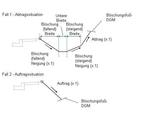 Neigung der Grabenböschungsverknüpfung (fallend; nur bei Abtrag), |