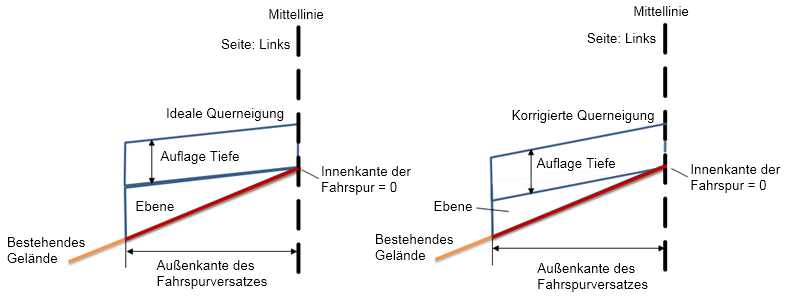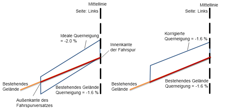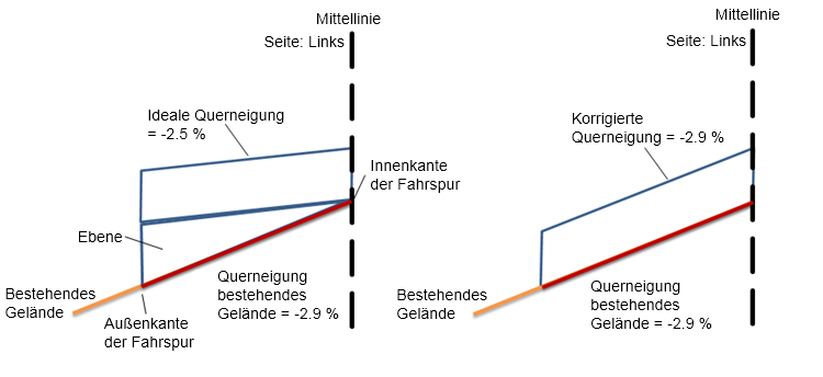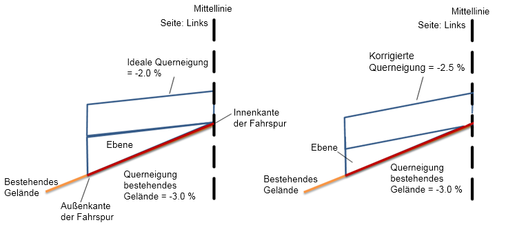 | Korrigierte Querneigung | Die korrigierte Querneigung wird auf -2.5 % angepasst. |