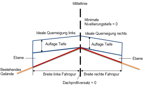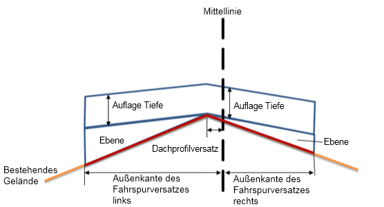 Der Zuordnungspunkt ist der Dachprofilpunkt der Auflageschicht mit fertiger Geländequerneigung.
