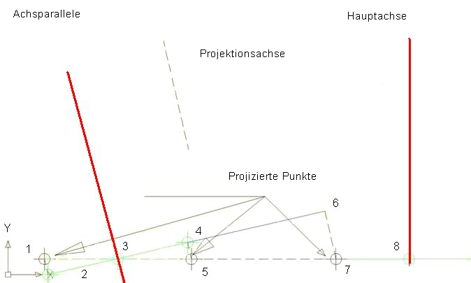 In der Entwurfsdarstellung stellt dieser Querschnittsbestandteil die Verknüpfung zwischen dem Zuordnungspunkt und dem markierten Punkt dar.