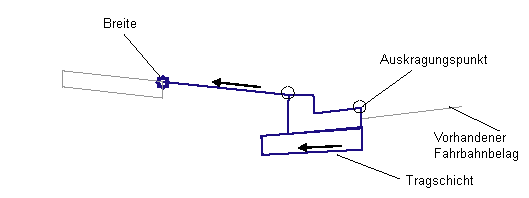 Gewünschte Höhendifferenz von der Kante des vorhandenen Fahrbahnbelags bis zum Auskragungspunkt. Ein positiver Wert steht für den Auskragungspunkt oberhalb des vorhandenen Fahrbahnbelags. |
