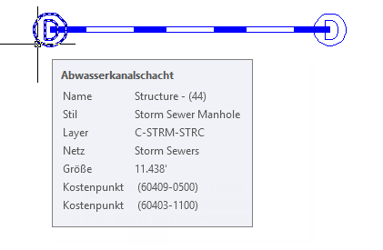 In der QuickInfo werden eine Beschreibung des Kostenpunkts und die ID angezeigt, die diesem Schacht/Bauwerk zugewiesen wurde.