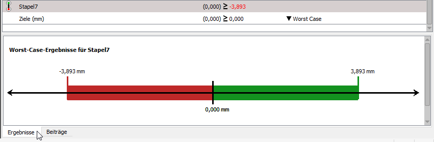 - Worst Case: Hier wird angenommen, dass sich alle Abstandsbemaßungen des Stapels, die in der Studie enthalten sind, gleichzeitig entweder an der äußersten Minimal- oder der äußersten Maximalgrenze befinden.