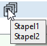 Das Symbol für gemeinsame Bemaßungen wird angezeigt, wenn eine Bemaßung in mehr als einem Stapel verwendet wird. Bewegen Sie den Mauszeiger über das Symbol, um eine Liste von Stapeln anzuzeigen, die die Bemaßung enthalten.
