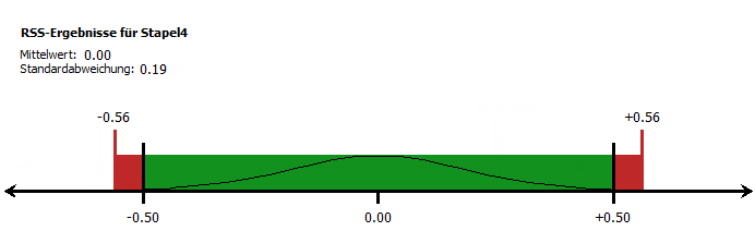 Das Diagramm für RSS-Ergebnisse zeigt die Parameter für den berechneten Mittelwert und die Standardabweichung für die RSS-Komponente oberhalb des Diagramms an. Außerdem wird eine Normalkurve angezeigt, die die statistische Art der Analyse angibt.