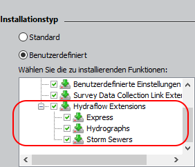 Um die Hydraflow Extensions zu installieren, stellen Sie sicher, dass die entsprechende Option aktiviert ist. Sie ist bei der Standardinstallation vorgabemäßig ausgewählt.