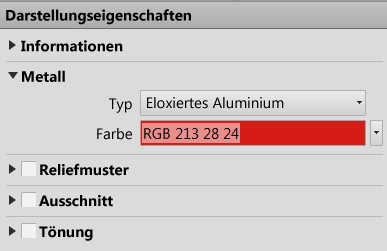 Materialdefinitionen sind mehrere Aspekte zugewiesen. Inventor verwendet die beiden Aspekte Darstellung und Physikalisch. Jeder Aspekt verfügt über bestimmte Eigenschaften, die zur Materialdefinition beitragen.