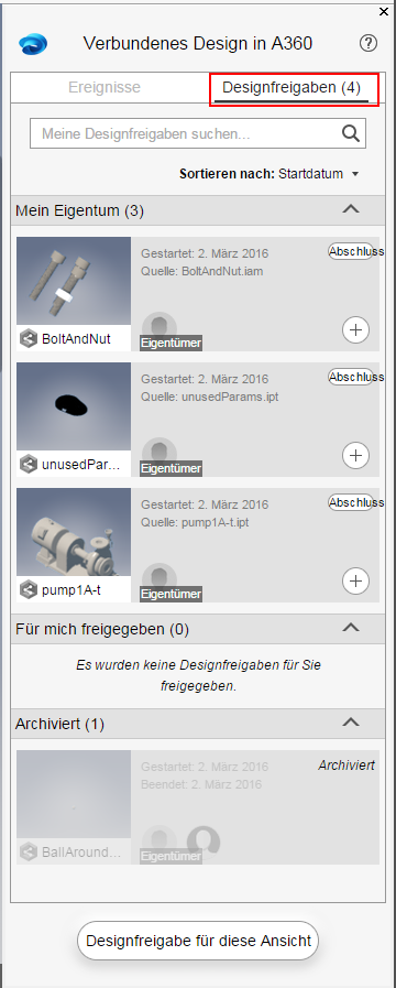 Werkzeuge für die Verwaltung von Konstruktionsfreigaben sind jetzt nun auch in Inventor verfügbar