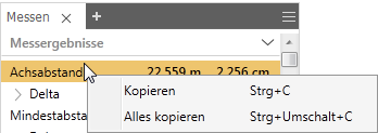 Schalten Sie für den Abstandsdeltawert ganz einfach zwischen Mindestabstand, Mitte-zu-Achsabstand und Maximalabstand um.