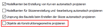 Vorgabemäßiges Projizieren von Geometrie als Konstruktionsgeometrie
