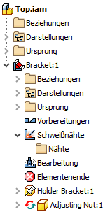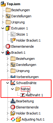 Sie können jetzt eine Schweißnaht aus einer Unterbaugruppe auswählen und diese als Teilnehmer in einem Baugruppenelement in der obersten Baugruppe hinzufügen, wenn die Schweißnaht nach dem Erstellen eines Baugruppenelements hinzugefügt wird.