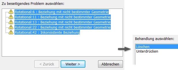Sie können jetzt in Design Doctor mehrere fehlerhafte Abhängigkeiten auswählen und löschen oder unterdrücken.