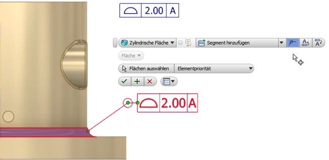 Für die Option Profil einer Fläche wird das Kreissymbol zu Form- und Lagetoleranzen hinzugefügt.