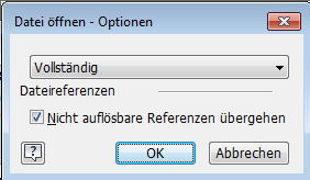 - Ein Kombinationsfeld zum Öffnen von Zeichnungen im Modus Vollständig oder Aufschieben wurde zwischen den Schaltflächen Optionen... und Schnellstart hinzugefügt. Aufschieben fasst die früheren Befehle Aktualisierungen aufschieben und Schnell Öffnen in einer Aktion zusammen, sodass die Zeichnung geöffnet wird, ohne dass Referenzdokumente (Bauteile, Baugruppen usw.) aktualisiert oder geladen werden.