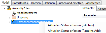 Schritt 2 Wählen Sie in der Baugruppendatei im Dialogfeld Regel bearbeiten auf der Registerkarte Modell mehrere Bauteilnamen aus, klicken Sie mit der rechten Maustaste, und wählen Sie Capture.Current.State (Components Constraints.Add) aus dem Kontextmenü. |