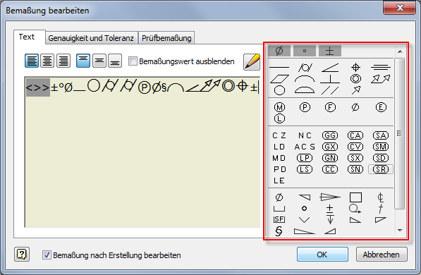 Im Dialogfeld Text formatieren wurden in der Symbolliste neue grafische Symbole hinzugefügt.