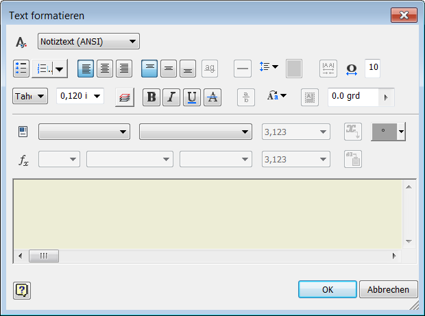 Das Dialogfeld Text formatieren wurde vereinfacht und angepasst, damit es klar und einfach zu verwenden ist. Die Größe des Dialogfelds wurde reduziert, um mehr Raum für die Bearbeitung im Grafikfenster zu schaffen.