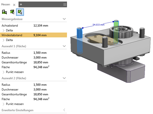Die Messwerkzeuge und Arbeitsabläufe in Inventor wurden deutlich vereinfacht und verbessert, um die Produktivität zu erhöhen. Sie haben jetzt folgende Möglichkeiten: