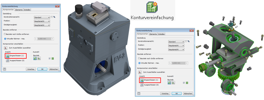 Die Konturvereinfachungswerkzeuge bieten jetzt mehr Kontrolle, eine verbesserte Benutzeroberfläche und einen besseren Arbeitsablauf. Sie können die Ansichts- und Detailgenauigkeitsdarstellungen nutzen, um schnell einfache Modelle zu definieren.