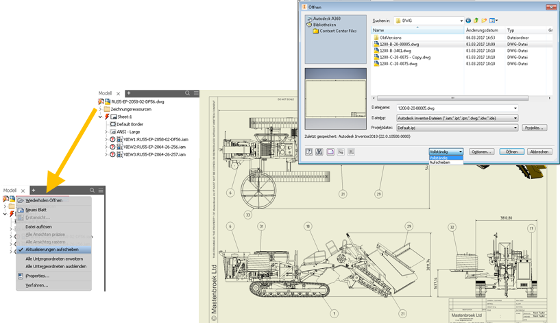Alle Dokumente profitieren zu einem gewissen Grad davon, am deutlichsten sind die Verbesserungen jedoch spürbar, wenn Sie mit großen Baugruppen und große Baugruppenzeichnungen arbeiten. Beispiel: