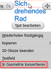 | 1. Klicken Sie mit der rechten Maustaste auf den Skizzentext. | 2. Treffen Sie eine Auswahl. | 3. Text wird in normale Geometrie konvertiert. |