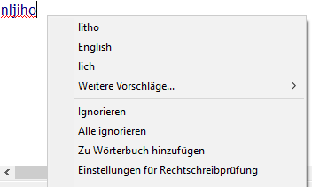Sie können auf Optionen für die Verwaltung der Rechtschreibprüfung und benutzerdefinierter Wörterbücher im Kontextmenü der roten wellenförmigen Linie (Einstellungen für Rechtschreibprüfung) und über die Registerkarte Allgemein im Dialogfeld Anwendungsoptionen zugreifen.