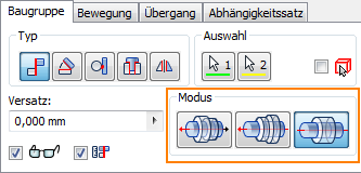 Verwenden Sie die neuen Optionen Entgegengesetzt und Ausgerichtet, um die Richtung einer Achse beim Erstellen einer Abhängigkeit Passend zwischen zwei Achsen zu steuern. Diese Optionen erleichtern Ihnen die Positionierung der Achsen in der gewünschten Art und Weise.