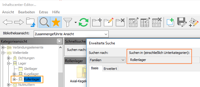 Im Editor suchen: Das Dialogfeld Inhaltscenter-Editor wird an der Stelle geöffnet, an der sich das Bauteil in der Inhaltscenter-Bibliothek befindet.