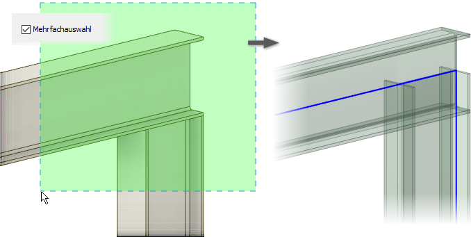 Die Rahmenskizzenkanten sind sichtbar, wenn Sie die Bearbeitungsbefehle Ändern und Wiederverwendung ändern verwenden.
