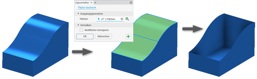 • Wählen Sie mindestens eine zu löschende Fläche. Sie können die Flächen vorab auswählen und den Befehl aktivieren.