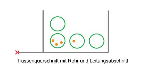 Bei Platzierung in einer Karte werden im Querschnitt die Rohre und Leitungsabschnitte der aktuellen Trasse angezeigt.