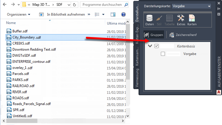 Ziehen Sie die Stadtgrenzendatei in die Darstellungsverwaltung, und legen Sie sie dort ab.
